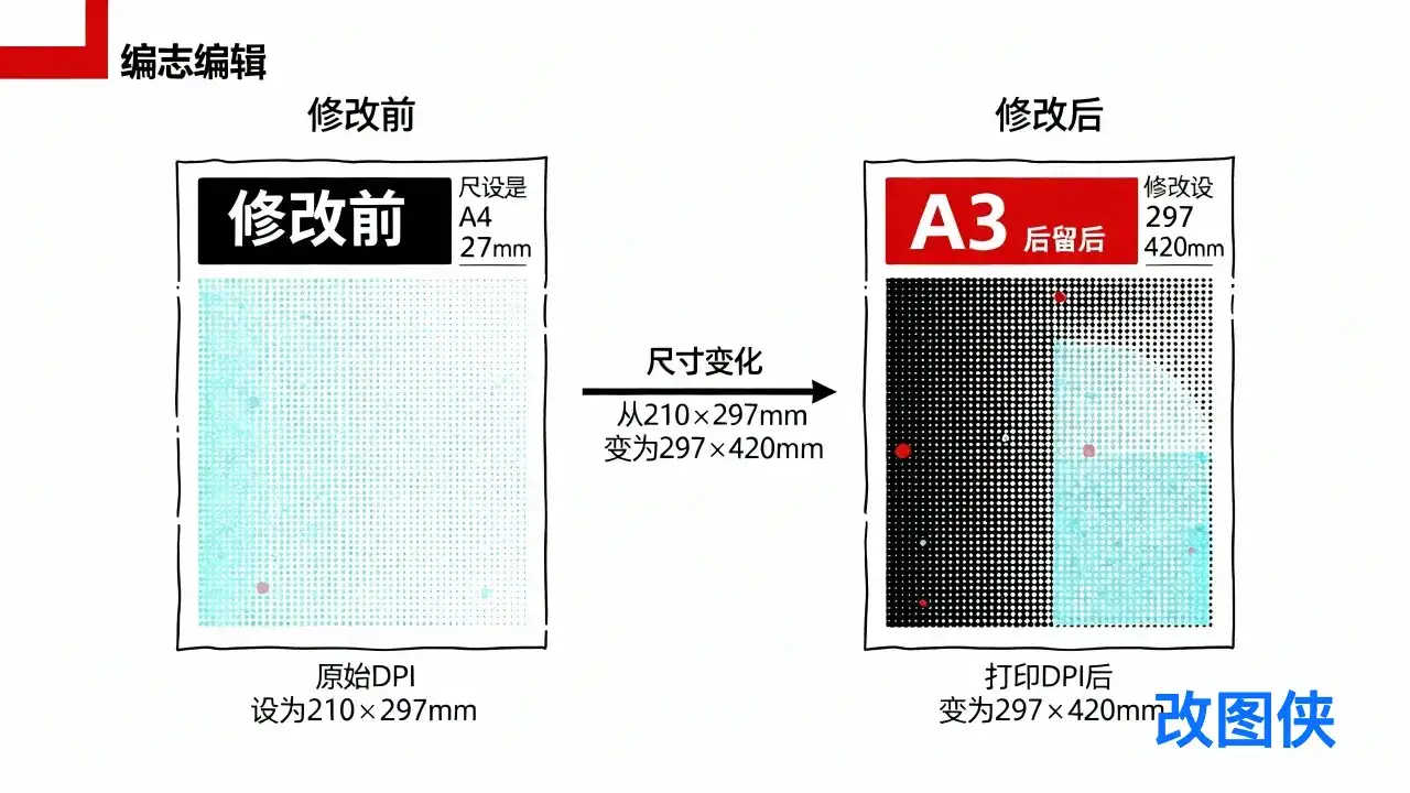 结果:图片变小了,清晰度没有提高。像素总数根本没变,只是告诉打印机"把这些像素挤到更小的纸面上"。